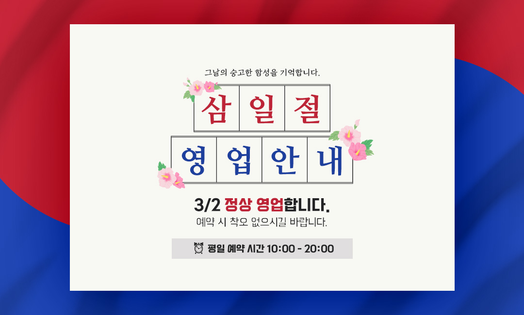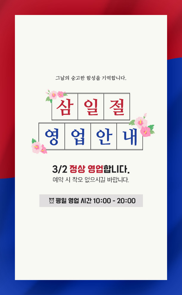 • 운영시간 : 평일 10:00 - 20:00 / 토요일 10:00 - 17:00 / 일요일 휴무
